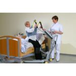 La Grúa Bipedestación 1620 facilita mucho la tarea en el baño, se maneja muy fácilmente y transmite mucha seguridad tanto al cuidador como al paciente para levantar y descender al paciente.