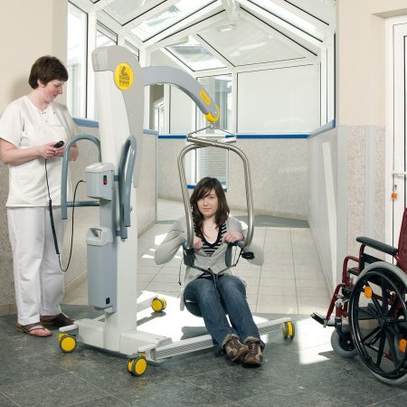 El modelo Victor es robusto, pero compacto. Las asas ergonómicas lo hacen más manejable, incluso en espacios reducidos. La base con anchura regulable eléctricamente se adapta a la perfección alrededor de una silla de ruedas o un sillón.