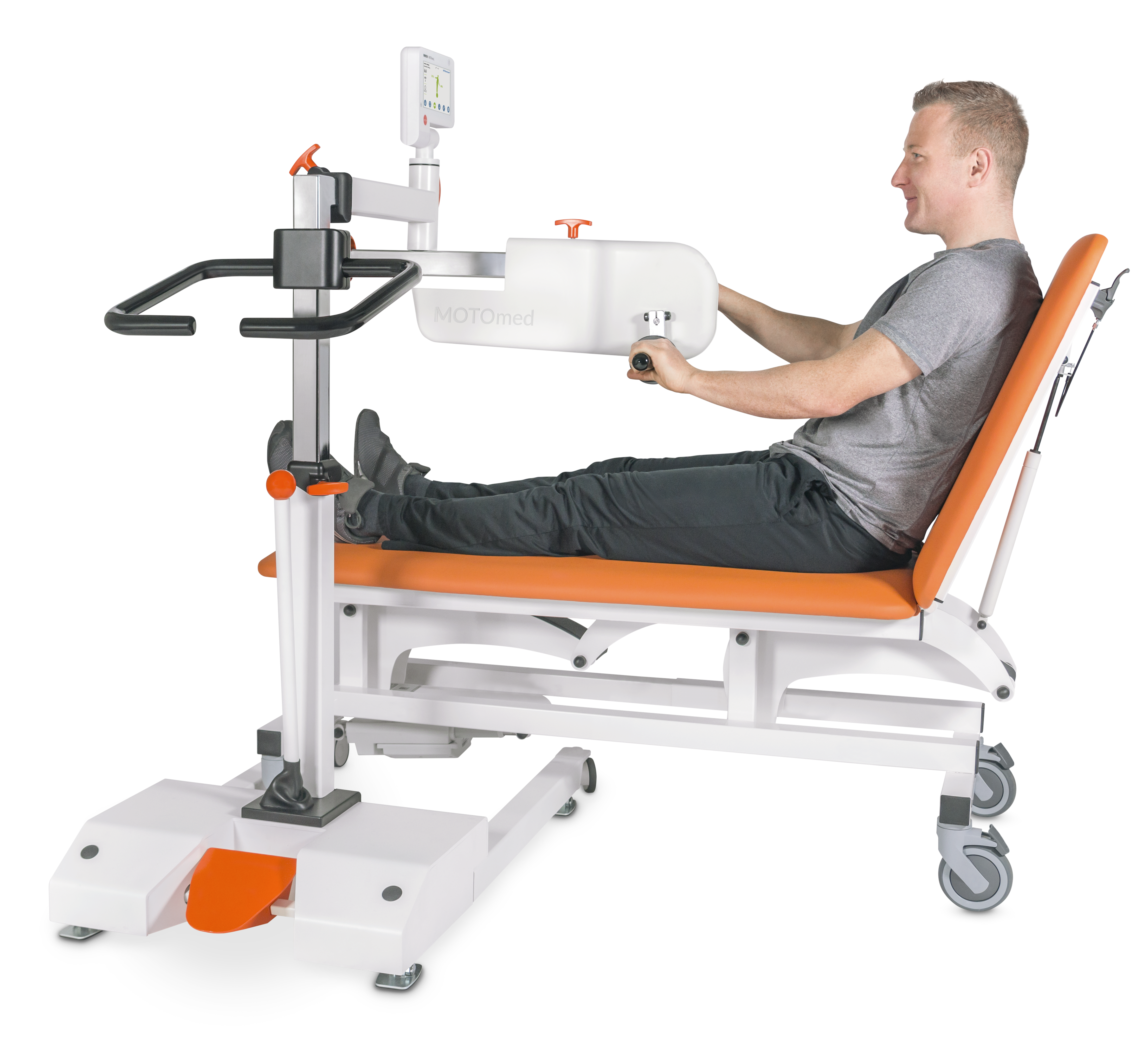 MOTOmed layson.la (chasis paralelo) está equipado con un ajuste de altura hidráulica así como un ajuste manual de flexión de rodilla.