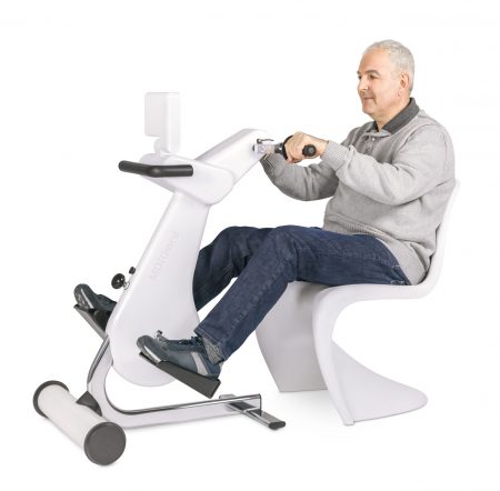 - MOTOmed loop p.la cuenta con un ajuste de altura del entrenador de piernas o brazo/torso ajustable cada 15 cm sin herramientas.