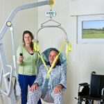 Si el estado físico o el handicap del paciente se opone a la utilización de un ShureHands, lo levantaremos con un arnés textil y con la percha Combi Handi-Move. Este arnés va suspendido a través de unas correas que se cuelgan a una percha Combi o barra de equilibrio cuya forma ergonómica, proporciones y puntos de suspensión garantizan un reparto perfecto del peso.