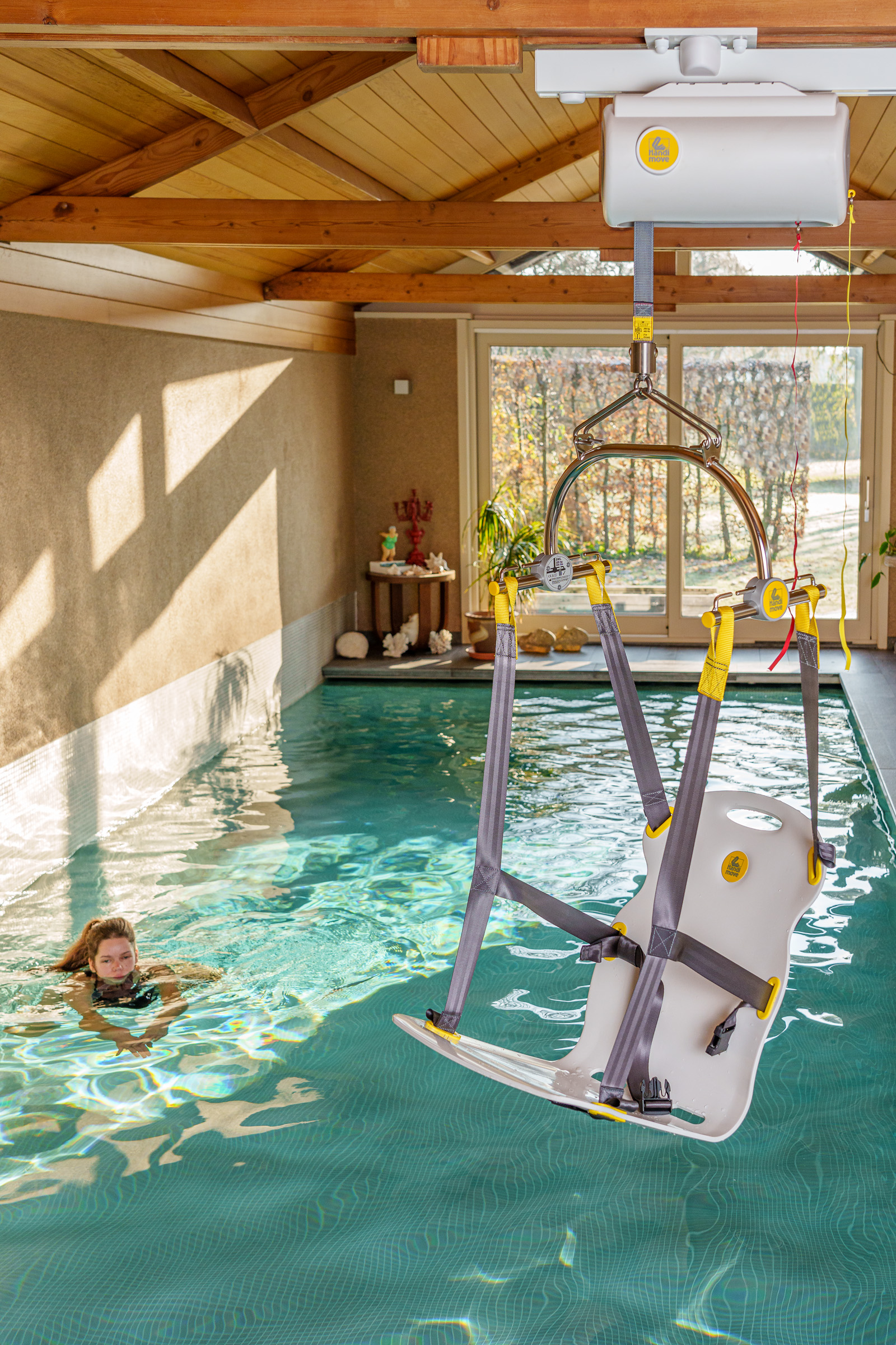 La silla para la grúa de piscina modelo 3620 está diseñada para ofrecer comodidad, seguridad y facilidad de uso tanto a niños como a adultos. Su asiento ergonómico garantiza una posición cómoda durante la transferencia, mientras que su resistente diseño en plástico asegura una larga durabilidad incluso en entornos húmedos. Además, incluye de serie una cinta para la cabeza, proporcionando un extra de seguridad. Esta silla es compatible con cualquier silla de ruedas, incluidas las de ducha, lo que la convierte en una opción versátil y práctica para diferentes necesidades.